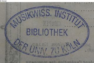 Autogramm: "A. []"; Rundstempel: "Musikwissenschaftliches Institut der Universität Köln"; ovaler Stempel: "Musikwiss. Institut der Univ. zu Köln Bibliothek"; handschriftliche Inventarnummer: "13,369";