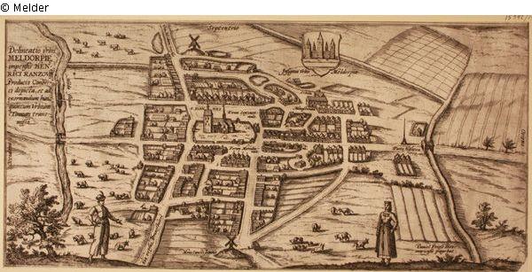 Beidseitig bedruckte Buchseiten, verso: Fragment des Texts über Meldorf (Deutsch) sowie Fortsetzung der Seite Heide mit Text über Heide und Fragment des Texts über Meldorf (Inv. 15973)