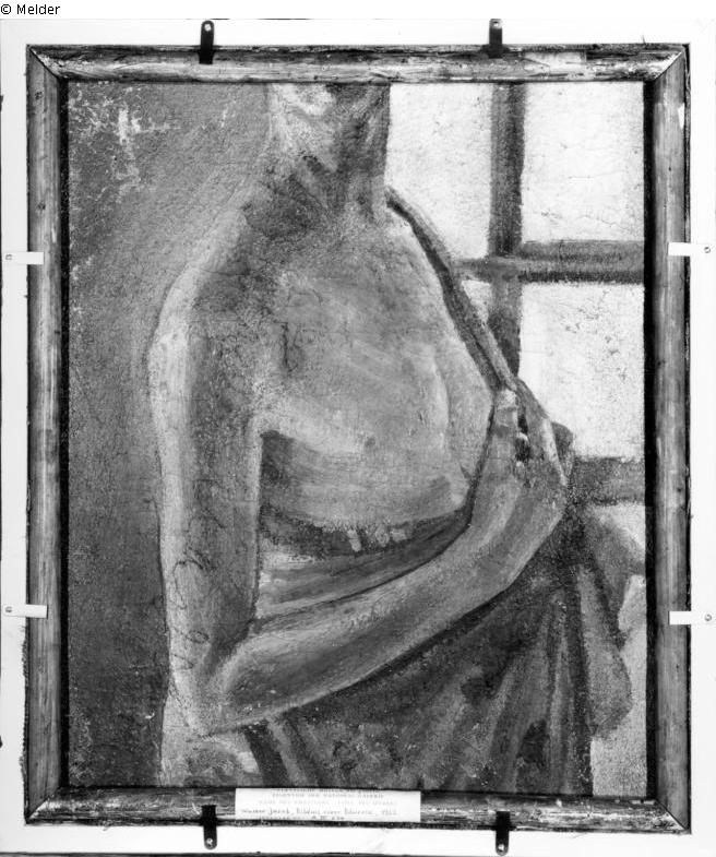 Fundmeldung | Einzelobjekt Bäuerin / Bildnis einer Bäuerin, Rückseite: Männlicher Halbakt vor einem Fenster Lost Art-ID618173 Vorherige Weiter Hersteller/Künstler:in Jacob, Walter Geburt 1893.10.21, Altenburg (Sachsen) WirkungsortDresdenLetzte Erwähnung(vor) 1925 TitelBäuerin / Bildnis einer Bäuerin, Rückseite: Männlicher Halbakt vor einem Fenster Datierung1922ObjektartGemäldeObjektgruppeMalereiMaterial / TechnikÖl ; Leinwand / gemalt Höhe 71,00 cm Breite 61,00 cm InventarnummerA IV 634 (nachinventarisiert) D.B.49Provenienz Rudolf Wiltschek, Berlinbis 15.8.1935 Dresdner Bank15.8.1935 Preußisches Finanzministerium, BerlinKaiser-Friedrich-Museum, Berlin21.8.1935 Nationalgalerie, Berlin Weiterlesen Weniger anzeigen Veröffentlicht seit26.02.2024 Kontakt Stiftung Preussischer Kulturbesitz Staatliche Museen zu Berlin Neue Nationalgalerie Invalidenstr. 50-51 10557 Berlin Deutschland Tel(030) 266 42 4510Fax(030) 266 42 4545E-Mailnng@smb.spk-berlin.deHomepagehttps://www.smb.museum/museen-und-einrichtungen/nationalgalerie/home.html Ansprechpartner:in Dr. Joachim JägerPositionLeiter der Neuen NationalgalerieTel+49 (0)30 266 42 4540E-Mailnng@smb.spk-berlin.de