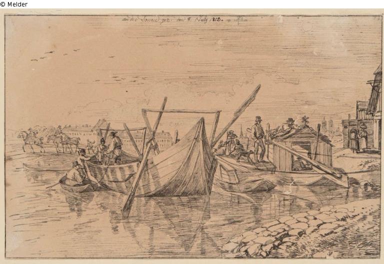 Boote mit Schiffern an der Donau