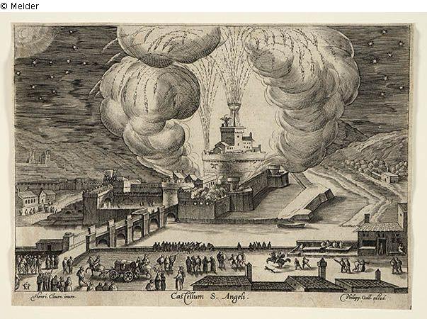 Beschriftung: CHV / Henri. Cliven. Inven. / Philipp. Gall. excud. / Castellum S. Angeli