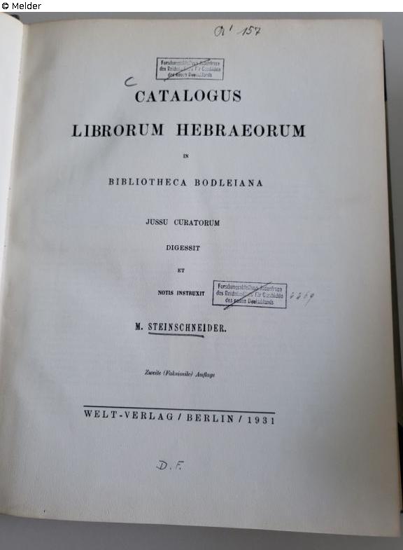 Catalogus Librorum Hebraeorum in Bibliotheca Bodleiana