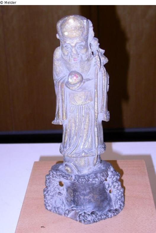 Glücksgott mit Granatapfel und Wanderstab