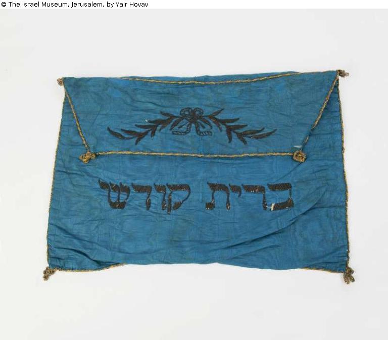Inscribed in Hebrew: "Holy covenant"; initials "BN" embroidered on the back