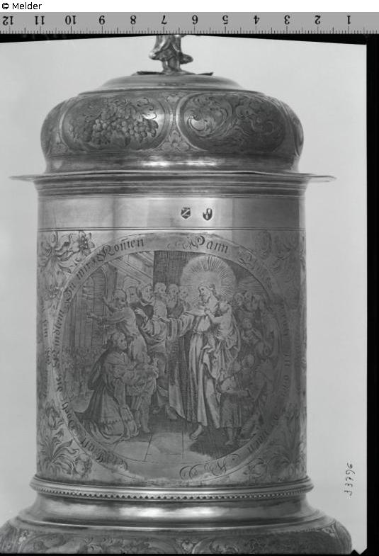 Provenienzforschung: Hedwig Ullmann (1872-1945) und ihre Familie wurden durch die Nationalsozialisten verfolgt. Einen Teil ihrer Sammlung mussten sie zwischen 1935 und 1937 versteigern, ein Teil der Objekte konnte 1938 zu Arthur Kauffmann (1887-1983), einem befreundeten Kunsthändler, gebracht werden. Kauffmann wurde ebenfalls verfolgt und flüchtete 1938 von Frankfurt nach London. Hedwig Ullmann und ihre Angehörigen verliessen Deutschland im selben Jahr Richtung Australien. Der Verkauf des Deckelhumpens an das SNM hängt wahrscheinlich mit der Flucht der Familie zusammen, weshalb ein NS-verfolgungsbedingter Entzug vorliegen könnte.