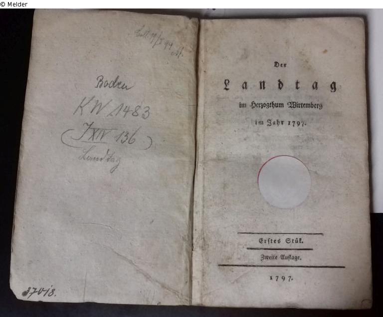 Buch; Papier, Druckerschwärze, Bindung, Textil, Einband. H 16,5 ; B 10 cm. Leicht gebräunt, Stockflecken. Mit einem farblosen, weißen Aufkleber verdeckter Stempel: "Bibliothek des Reichsgerichts".