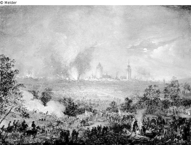 Fundmeldung | Einzelobjekt Die Beschiessung Frankfurts 1796 Lost Art-ID436081 Vorherige Weiter Hersteller/Künstler:in Urlaub, Georg Karl Geburt 1749.10.03, Ansbach Tod 1811.10.26, Darmstadt WirkungsortWürzburg; Wertheim; Frankfurt (Main); Hanau TitelDie Beschiessung Frankfurts 1796ObjektartGemäldeObjektgruppeMalereiMaterial / TechnikÖl ; Holz (Eiche) / gemalt Höhe 18,40 cm Breite 24,60 cm InventarnummerB.1938.24Beschreibung Zugangsnummer 1938.24. Weiterlesen Weniger anzeigen Provenienz unbekannt Weiterlesen Weniger anzeigen Veröffentlicht seit16.05.2011 Kontakt Historisches Museum Frankfurt (Main) Saalhof 1 60311 Frankfurt (Main) Deutschland Tel(069) 21235599Fax(069) 21230702E-Mailinfo.historisches-museum@stadt-frankfurt.deHomepagehttp://www.historisches-museum-frankfurt.de/ Ansprechpartner:in Historisches Museum Frankfurt (Main)Tel+49 (0) 69 21235599E-Mailinfo.historisches-museum@stadt-frankfurt.de