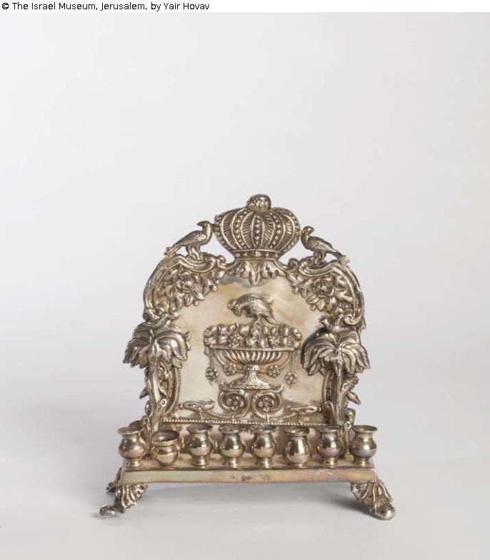 Hanukkah lamp with birds and palm trees