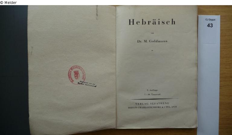 Fundmeldung | Einzelobjekt Hebräisch Lost Art-ID450932 Vorherige Weiter Autor:in Goldmann, M. Verlag Sefathenu TitelHebräischErscheinungsortBerlin / Tel Aviv Erscheinungsdatum1933ObjektartBuchObjektgruppeBuchMaterial / TechnikbroschiertSignaturCJ Depot 43Beschreibung Autogramme Weiterlesen Weniger anzeigen Provenienz Hartbrodt, Ilse (vermutl. Ilse Hanna Hartbrodt, geb. 17.12.1926 in Berlin, deportiert am 14.11.1941 n. Minsk) Weiterlesen Weniger anzeigen Veröffentlicht seit12.01.2012 Kontakt Stiftung Neue Synagoge Berlin - Centrum Judaicum Oranienburger Straße 28-30 10117 Berlin Deutschland Tel030-88028-300Fax030-88028-483E-Mailoffice@centrumjudaicum.deHomepagehttp://www.centrumjudaicum.de