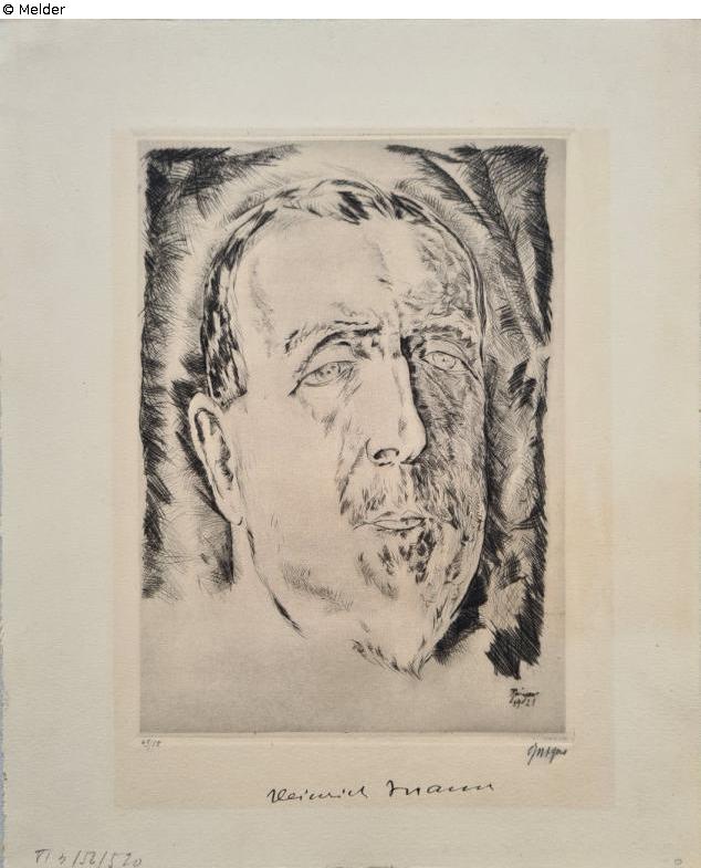 Heinrich Mann, aus "Köpfe. Eine Sammlung von Bildnisradierungen bekannter Persönlichkeiten, 1921"