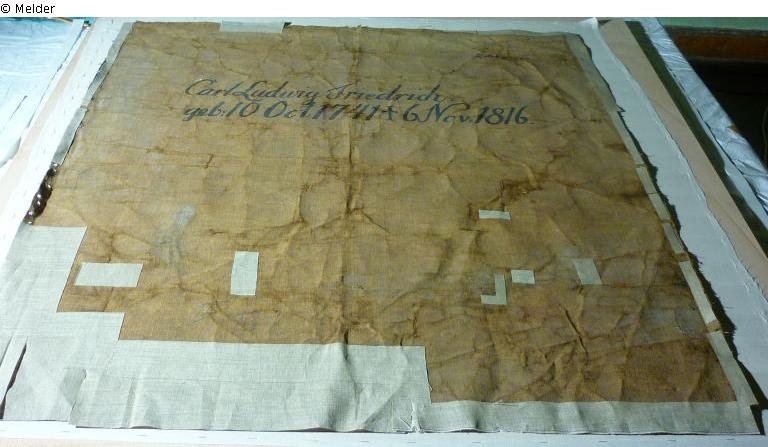 Fundmeldung | Einzelobjekt Herzog Karl Ludwig Friedrich von Mecklenburg-Strelitz Lost Art-ID521668 Vorherige Weiter Hersteller/Künstler:in Zeller, Anton Geburt 1760.02.23, Scherzingen (Baden) Tod (um) 1837 TitelHerzog Karl Ludwig Friedrich von Mecklenburg-StrelitzObjektartGemäldeObjektgruppeMalereiMaterial / TechnikÖl ; Leinwand / gemalt Höhe 118,00 cm Breite 102,00 cm InventarnummerG 1604Beschreibung verso: Bildträger „Carl Ludwig Friedrich. / geb. 10 Oct 1741 † 6 Nov 1816“ Weiterlesen Weniger anzeigen Provenienz „nach 1945“ Weiterlesen Weniger anzeigen Veröffentlicht seit26.09.2014 Kontakt Staatliche Schlösser, Gärten und Kunstsammlungen Mecklenburg-Vorpommern Staatliches Museum Schwerin Alter Garten 3 19055 Schwerin Deutschland Tel+49 (0) 385 588 47 222Fax+49 (0) 385 588 47 009E-Mailinfo@museum-schwerin.deHomepagehttp://www.museum-schwerin.de Ansprechpartner:in Dr. Pirko ZinnowPositionDirektorinE-Mailpirko.zinnow@ssgk-mv.de