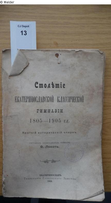 Fundmeldung | Einzelobjekt Hundert Jahre Klassisches Gymnasium Jekatharinoslav. 1805-1905 Lost Art-ID452532 Vorherige Weiter Autor:in Lokot, Th. Drucker:in Bezirksdruckerei TitelHundert Jahre Klassisches Gymnasium Jekatharinoslav. 1805-1905ErscheinungsortJekatharinoslav Erscheinungsdatum1908ObjektartBuchObjektgruppeBuchMaterial / TechnikgebundenSignaturCJ Depot 13Provenienz unbekannt Weiterlesen Weniger anzeigen Veröffentlicht seit15.03.2012 Kontakt Stiftung Neue Synagoge Berlin - Centrum Judaicum Oranienburger Straße 28-30 10117 Berlin Deutschland Tel030-88028-300Fax030-88028-483E-Mailoffice@centrumjudaicum.deHomepagehttp://www.centrumjudaicum.de