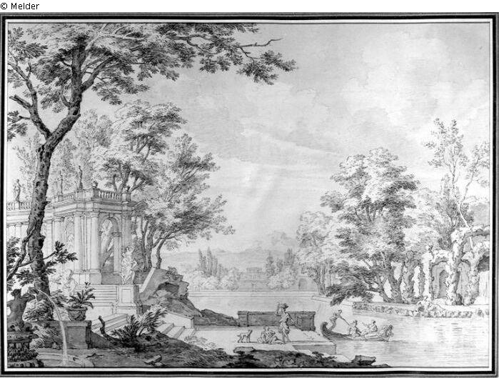 Idealer Gartenprospekt mit Arkaden am Wasser