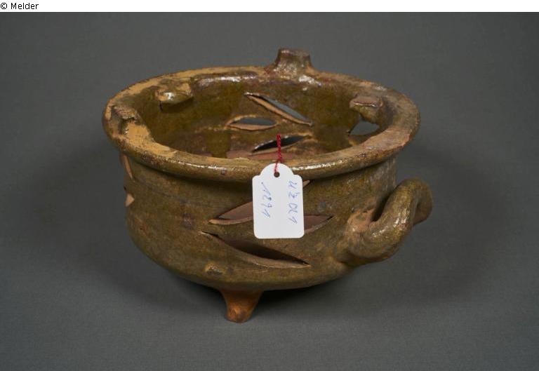 Konvolut bestehend aus drei grün emaillierten Tonstövchen. Vermutlich in Ostfriesland im 19. Jahrhundert als Gebrauchsware hergestellt.