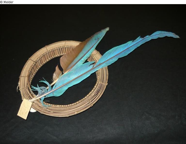 Kopfreifen, geflochten mit 2 senkrechten blauen Ararafedern