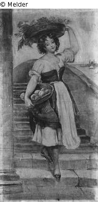 Mädchen mit Obst, die Treppe einer Brücke herabsteigend