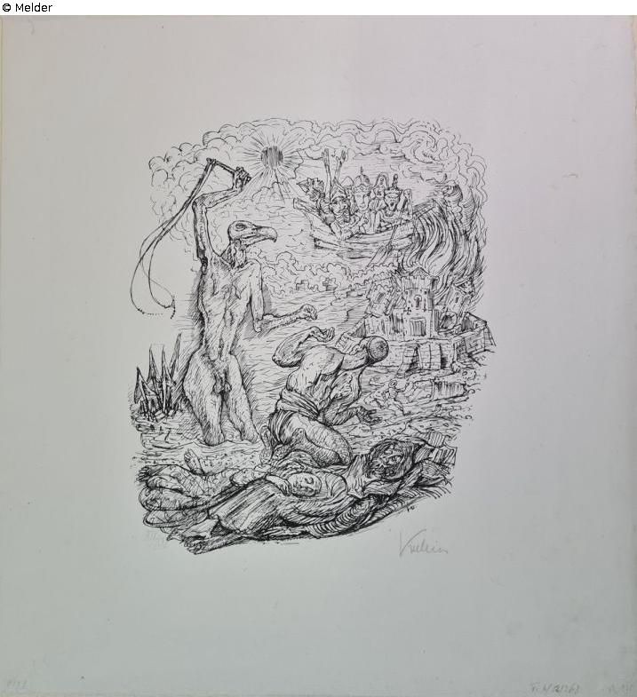 Recto: o.l. in Blei "3[?]", u.l. in Blei "XIX/XXV", u.r. im Stein Signatur "K.", u.r. in Blei Signatur "Kubin", u.l. in Blei "B17[3?]9", u.r. in Blei Inv.nr. "VI b/52/363", "47/1935"; Verso:-.