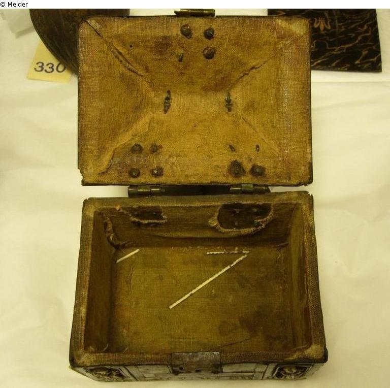 Minnekästchen mit figürlichen Beineinlagen