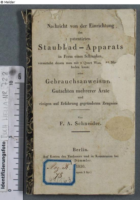 Nachricht von der Einrichtung des patentirten Staubbad-Apparats