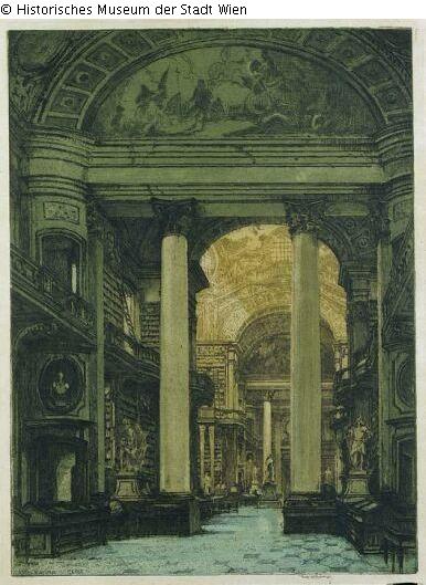Stadtansicht Wien; Platte Höhe: 59,5 cm, Breite: 43 cm; Bezeichnet und datiert links unten (im Druck): Luigi Kasimir MCMIX, signiert rechts unten: Luigi Kasimir