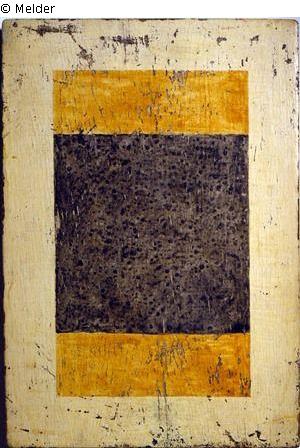 Ohne Titel (schwarze und gelbe Flächen vor weißem Grund)