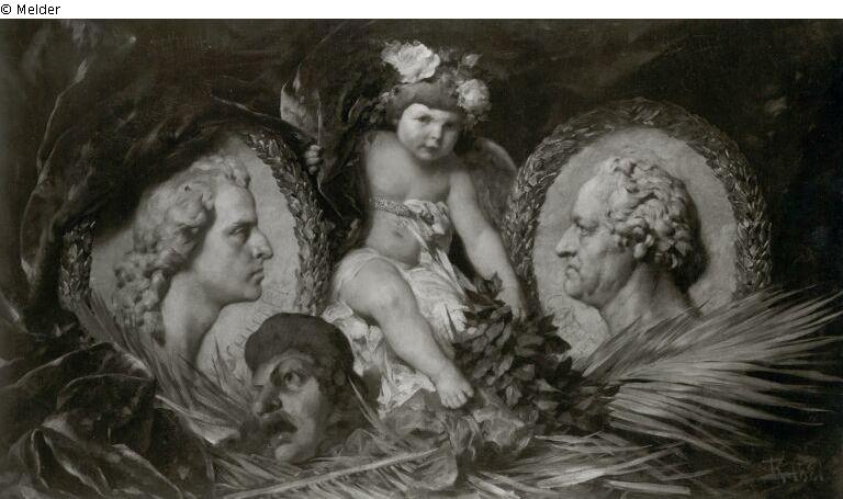 Fundmeldung | Einzelobjekt Putto mit Medaillons von Schiller und Goethe Lost Art-ID219027 Vorherige Weiter Hersteller/Künstler:in Keller, Ferdinand Geburt 1842.08.05, Karlsruhe Tod 1922.07.08, Baden-Baden TitelPutto mit Medaillons von Schiller und Goethe Datierung1881ObjektartMalereiObjektgruppeMalereiMaterial / TechnikÖl ; Leinwand / gemalt Höhe 82,00 cm Breite 143,00 cm Inventarnummermü11770Beschreibung Der bekränzte Putto zwischen den beiden Reliefs. Unterhalb Schillers eine Maske. Signatur: monogr.u.dat.: 1881 Weiterlesen Weniger anzeigen Bestand Kulturgüter aus dem ehemaligen ReichsvermögenVeröffentlicht seit2001 Kontakt Kunstverwaltung des Bundes Herbert-Bayer-Straße 5 13086 Berlin Deutschland E-Mailprovenienzforschung@kvdb.bund.deHomepagehttp://www.kunstverwaltung.bund.de
