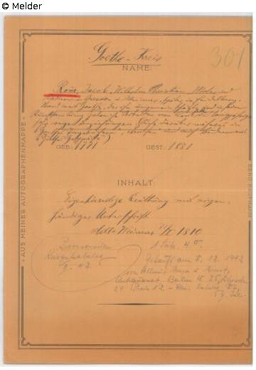 Beno Berl Kaufmann, Dresden; erworben vom Hellmut Meyer & Ernst, Berlin, 08.12.1942, Lagerkatalog 87, II. Teil, Nr. 301 (bereits restituiert)