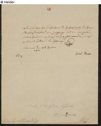 Quittung über 4 Louis d'or für ein Porträt des "Oberforstmeisters von Ziegesar", in einer namentlich gekennzeichneten Inventarmappe des Sammlers