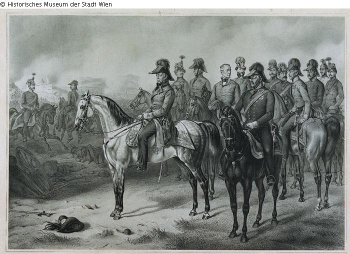 Der österreichische Feldmarschall Graf Radetzky als Sieger der Schlacht von Vicenza am 10. 6. 1848; das Blatt ist Kaiser Franz Joseph I. gewidmet.