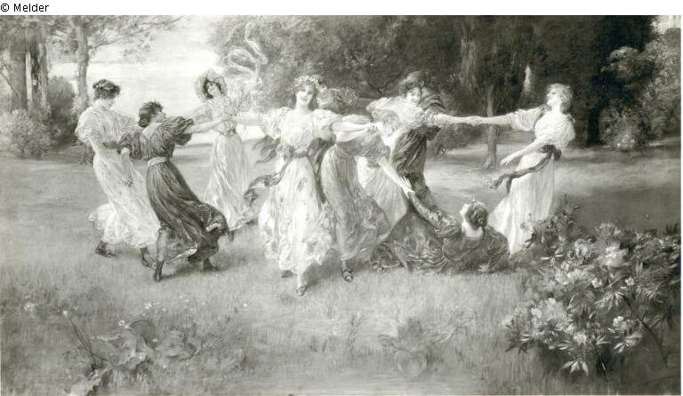 Fundmeldung | Einzelobjekt Reigen (Tanzende Mädchen) Lost Art-ID220566 Vorherige Weiter Hersteller/Künstler:in Kaulbach, Friedrich August von Geburt 1850.06.02, München Tod 1920.07.26, Ohlstadt (Murnau) WirkungsortMünchen; Paris TitelReigen (Tanzende Mädchen)ObjektartMalereiObjektgruppeMalereiMaterial / TechnikPastellfarbe / gemalt Höhe 49,00 cm Breite 83,50 cm Inventarnummermü768Beschreibung Zehn tanzende Mädchen in langen Gewändern auf einer Wiese vor Baumstaffage. Weiterlesen Weniger anzeigen Bestand Kulturgüter aus dem ehemaligen ReichsvermögenVeröffentlicht seit2001 Kontakt Kunstverwaltung des Bundes Herbert-Bayer-Straße 5 13086 Berlin Deutschland E-Mailprovenienzforschung@kvdb.bund.deHomepagehttp://www.kunstverwaltung.bund.de