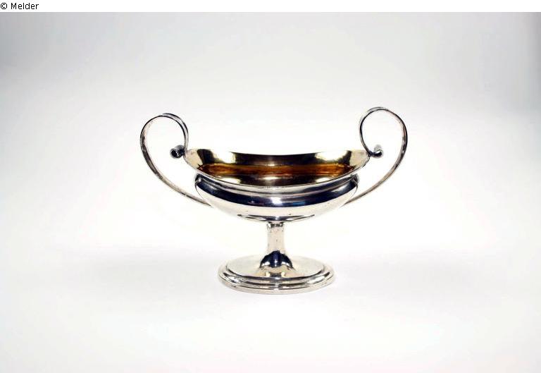 2 Henkel; 2 Marken (Ross/O und SICK(?)); Tremulierstich. Innen vergoldet.