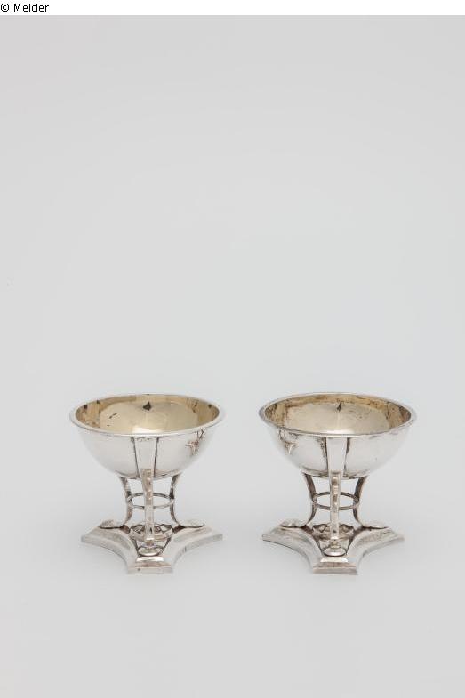 Salzgefäß - kalottenförmig auf geschweiftem Dreifuß; Meisterzeichen "BM"; Beschauzeichen