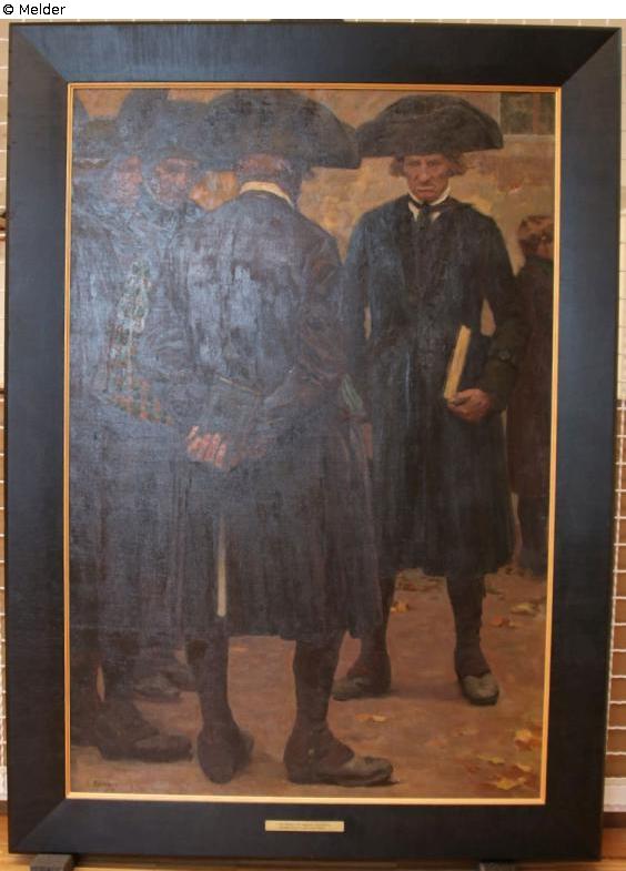 Inventar B 01 Gemälde A-B (Männer vor der Kirche; mit Kugelschreiber in Blau korrigiert zu: Schwälmer Bauern vor der Kirche).