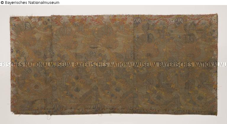 Provenienzforschung: von 'Reichsleiter' Martin Bormann (1900-1945) als Fiduziar für die NSDAP erworben: "Es wird festgestellt, dass a) die in der Anlage zur Übertragungsurkunde näher bezeichneten, bei der Treuhandverwaltung von Kulturgut in München, Arcisstrasse 10 lagernden Kunstgegenstände Eigentum der ehemaligen NSDAP und der Parteikanzlei am Obersalzberg, Berchtesgaden waren, b) diese Vermögensgegenstände laut den bei der Treuhandverwaltung von Kulturgut in München befindlichen Belegen und Rechnungsunterlagen von dem ehem. Reichsleiter der NSDAP Martin Bormann erworben wurden, dieser gleichzeitig auch Leiter der sogenannten Bormann-Verwaltung in Berchtesgaden, Franziskanerplatz 6 war, c) es sich daher nicht um Privateigentum des Martin Bormann handelt, sondern um einen Eigentumserwerb für Zwecke der NSDAP, Martin Bormann also nur als Fiduziar für die NSDAP zu betrachten ist (vgl. OMGUS Direktive und Ermächtigung der Militärregierung für Bayern - Prop. Div. vom 10.2.1949 - AG 386 - MGBP), d) die übertragenen Gegenstände somit unter die KRD 50 und das MRG 58 fallen." [Az.: VI C/III D 4516: Übertragungsurkunde Nr. 2107/V ("Kunstgegenstände der ehemaligen NSDAP und der Parteikanzlei bei der Treuhandverwaltung von Kulturgut in München, Arcisstrasse 10") vom 10.12.1956]. Eingang/Receipt (Central Collecting Point München): 19.07.1945; Ausgang/Issue (Central Collecting Point München): 10.06.1949 (Ministerpräsident)/11.03.1959 (Zentralfinanzamt München). Am 18.03.1960 über den Central Collecting Point München aus dem Besitz/der Vermögenseinziehung der NSDAP/Parteikanzlei aus ehemaligem Reichsbesitz (Treuhandverwaltung von Kulturgut) als 'Überweisung aus Staatsbesitz' aus dem Besitz des Freistaats Bayern übernommen; gemäß Entschluss des Bayerischen Staatsministeriums der Finanzen vom 23.03.1961 [Az.: 0 1481/E - 17 172 Mü 2149] dem Bayerischen Nationalmuseum endgültig zugewiesen: Nr. 32 der Übertragungsurkunde Nr. 2107/V ("Kunstgegenstände der ehemaligen NSDAP und der Parteikanzlei bei der Treuhandverwaltung von Kulturgut in München, Arcisstrasse 10") vom 10.12.1956. NSDAP-Parteibesitz: aus dem NSDAP-Textilkonvolut mit der Münchner Nummer 4730/1-6 sind dem BNM vom Freistaat Bayern folgende Objekte überwiesen worden (Münchner Nummer = BNM Inv.-Nr.): 4730/3-5 = 60/133.1-60/135. Laut Kontrollnummernkartei (Karteikarte der Münchner Nummer 4730; Bundesarchiv, B323/613): "Besitzer/Possessor: Untern[umme]r 1 restituted to France, 1.7.49" (vgl. Münchner Nummer 7396 = BNM Inv.-Nrn. 65/166, 65/170, 65/172-173, 65/175-176.3, 65/187-189, 65/200, 65/214.1-3, 2012/48-49, 2012/65, 2012/67, 2012/108, 2012/122, 2012/249-250; Münchner Nummer 7397 = BNM Inv.-Nrn. 65/162-163, 65/186, 65/191, 65/194-196, 65/198, 65/209-210, 65/212, 65/215, 2012/54, 2012/70-72, 2012/89-90, 2012/97, 2012/106; Münchner Nummer 7398 = BNM Inv.-Nrn. 65/168-169, 65/171, 65/178-179, 65/182, 65/185, 65/190, 65/208, 65/213, 2012/42, 2012/55, 2012/96, 2012/104, 2012/109, 2012/123-124; Münchner Nummer 7399 = BNM Inv.-Nrn. 65/165, 65/167, 65/174, 65/180-181, 65/184, 65/192.1-2, 65/201-202, 65/207, 2012/68, 2012/110). Vorprovenienz: unbekannt. Zu unbekanntem Zeitpunkt aus unbekanntem Eigentum/Besitz in NSDAP-Besitz. Aufgrund der Provenienzlücke(n) kann ein NS-verfolgungsbedingter Entzug nicht ausgeschlossen werden./A.G., 2018