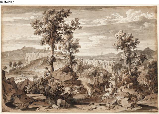 Serpentaralandschaft mit Hirten beim Feuer