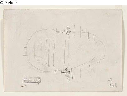 Skizze zu einer Burg (Recto) Schematische Notation zu einem Bühnen- und Zuschauerraum (Verso)