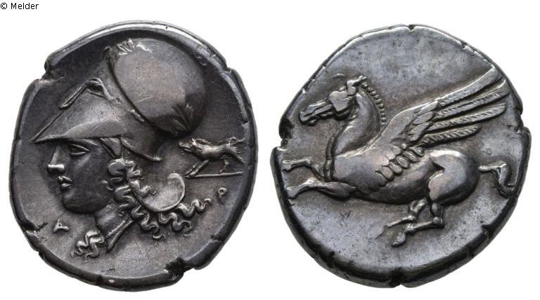 Stater (Münze Hellas / Korinth): Pegasos / Athenakopf