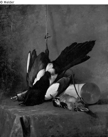 Fundmeldung | Einzelobjekt Stilleben mit toter Elster Lost Art-ID219015 Vorherige Weiter Hersteller/Künstler:in Meyerheim, Paul Friedrich Geburt 1842.07.13, Berlin Tod 1915.09.14, Berlin WirkungsortBerlin TitelStilleben mit toter Elster Datierung1863ObjektartMalereiObjektgruppeMalereiMaterial / TechnikÖl ; Leinwand / gemalt Höhe 57,50 cm Breite 47,50 cm Inventarnummermü11714Beschreibung Signatur: Paul Meyerheim/1863;Die Elster an einem Bein aufgehängt, rechts ein kleiner Vogel. Auf einem mit einer Decke belegten Tisch. Weiterlesen Weniger anzeigen Bestand Kulturgüter aus dem ehemaligen ReichsvermögenVeröffentlicht seit2001 Kontakt Kunstverwaltung des Bundes Herbert-Bayer-Straße 5 13086 Berlin Deutschland E-Mailprovenienzforschung@kvdb.bund.deHomepagehttp://www.kunstverwaltung.bund.de