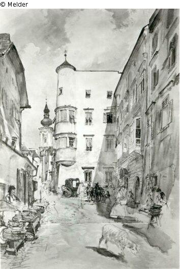 Fundmeldung | Einzelobjekt Straßenszene in Gemunden Lost Art-ID219326 Vorherige Weiter Hersteller/Künstler:in Alt, Rudolf von Geburt 1812.08.28, Wien Tod 1905.03.12, Wien WirkungsortWien TitelStraßenszene in GemundenObjektartAquarellObjektgruppeGrafikMaterial / TechnikWasserfarbe ; Papier / aquarelliert Höhe 33,00 cm Breite 23,00 cm Inventarnummermü2399/19Beschreibung Links Gemüsestände, im Mittelgrund Haus mit halbrundem Erker: hinten eine Kirche mit Zwiebelturm. Weiterlesen Weniger anzeigen Bestand Kulturgüter aus dem ehemaligen ReichsvermögenProvenienz Die Provenienz konnte nicht abschließend geklärt werden Weiterlesen Weniger anzeigen Veröffentlicht seit2001 Kontakt Kunstverwaltung des Bundes Herbert-Bayer-Straße 5 13086 Berlin Deutschland E-Mailprovenienzforschung@kvdb.bund.deHomepagehttp://www.kunstverwaltung.bund.de
