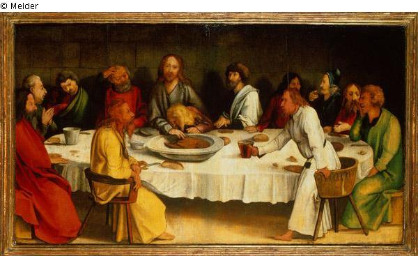 Tafelbild Vorderseite: Abendmahl / Rückseite: Heilige Dorothea und Heilige Agnes