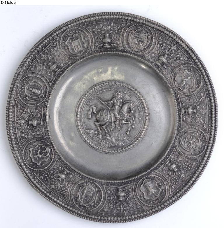Teller mit Wappen und Reiterbildnis Eberhard III. Herzog von Württemberg