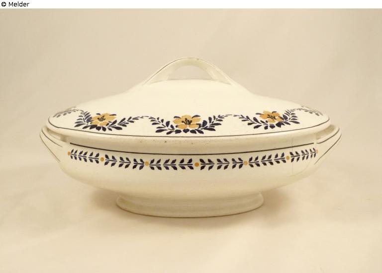 Die Terrine wurde 1942/43 bei einem Verkauf von gebrauchtem Haushaltsgut in Neuenkirchen bei Bramsche in der Gaststätte Welling gekauft. 2017 von der Enkelin der Käuferin dem Museumsdorf Cloppenburg übergeben.
