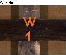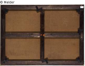 Dieser Aufkleber steht jedoch nicht im Zusammenhang mit dem Gemälde, da der Rahmen im Jahr 1988 dem Gemälde in Zweitverwendung gegeben worden ist.