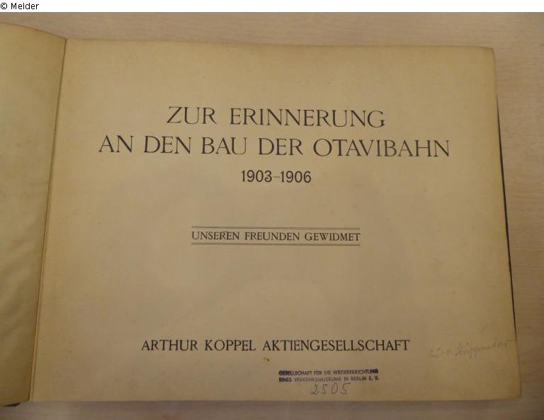 Zur Erinnerung an den Bau der Otavibahn 1903-1906