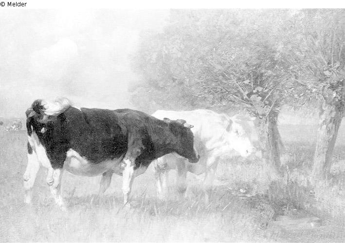 Zwei Kühe auf der Weide [Zwei Kühe auf der Weide unter Kopfweiden]