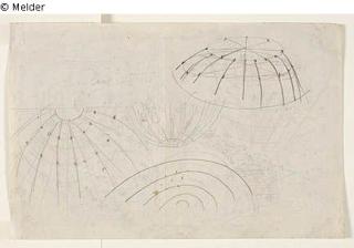 Zwei Skizzen zu Bühnenräumen (Recto) Drei Notationen zu Kuppeln? (Verso)
