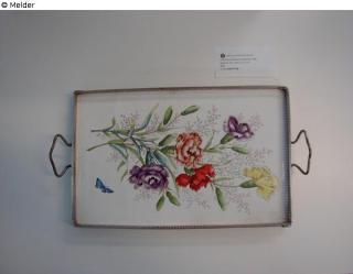 Fundmeldung Tablett Hersteller/Künstler:in Unbekannt Objektart Kunsthandwerk / -gewerbe (allgemein) Material / TechnikKeramik (Porzellan) ; Metall [diverse]Lost Art-ID635751
