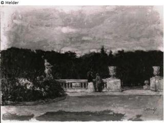 Fundmeldung Parkterasse mit Blumenbeet und zwei Personen / Schönbrunn / Paar auf Parkterasse / Parkterrasse Schönbrunn / Menschenim Park Hersteller/Künstler:in Albrecht, Carl (1862) Objektart Malerei Material / TechnikPappe / gemalt ; PastellLost Art-ID574827