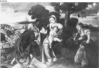 Fundmeldung Maria mit Kind Hersteller/Künstler:in Bonifazio Veronese ((Nachfolger / school)) Objektart Gemälde Material / TechnikÖl ; Tempera ; Holz / gemaltLost Art-ID279609
