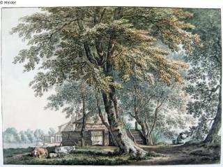 Fundmeldung Bauerngehöft unter Bäumen Hersteller/Künstler:in Borsteegh, Cornelis Objektart Grafik Material / TechnikKreide ; Farbe mehrfarbig / gezeichnet ; gezeichnet (Pinsel)...Lost Art-ID584017